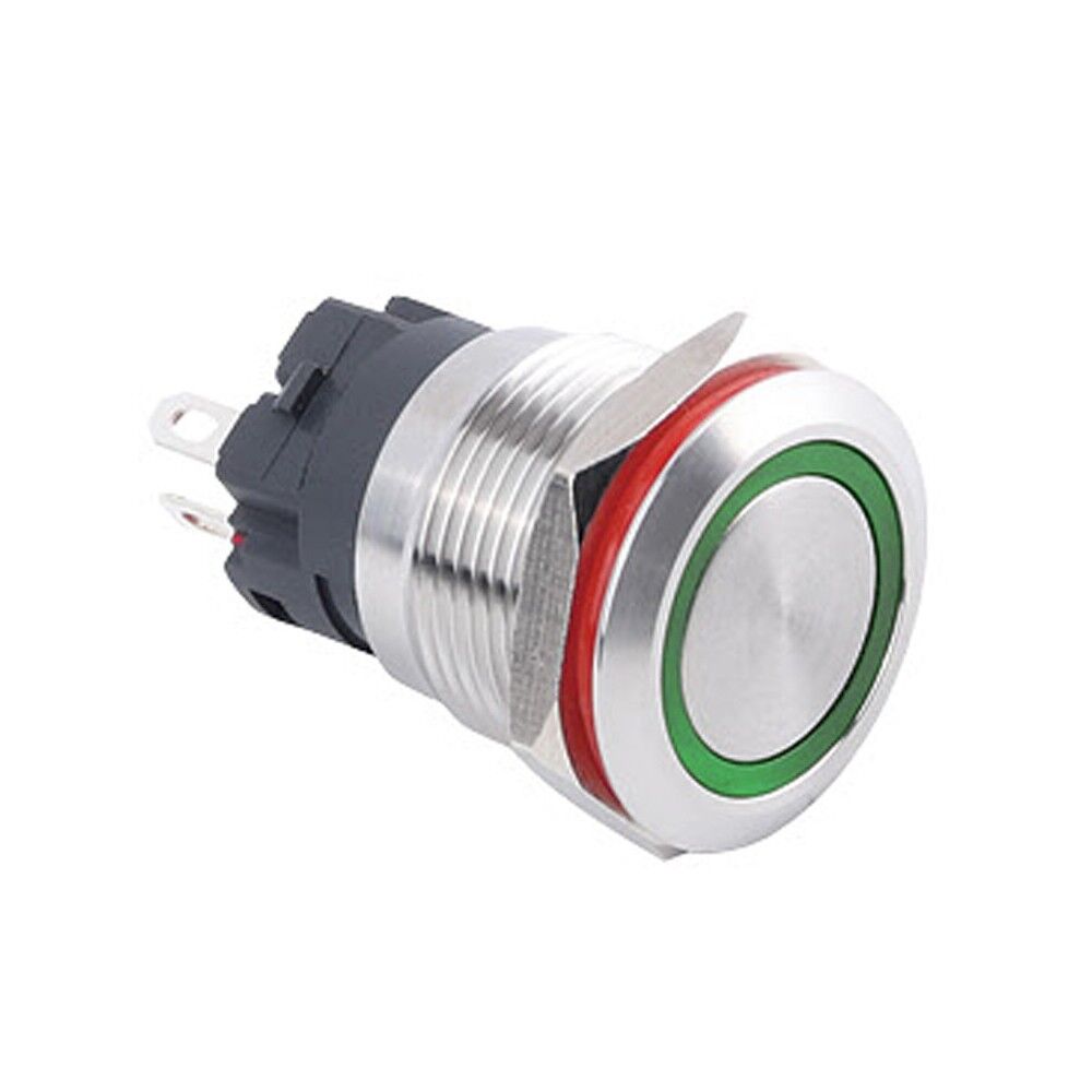• 1 x 19A-P1Z-E Düz Anahtarlı Işıklı Metal Buton 19mm - Yeşil