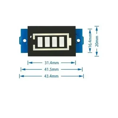 Lityum pil kapasite göstergesi modülü, 1S(3.3 ve 4.2V) Lipo ve Li-ion pillerin doluluk oranını göstermektedir. Lipo veya Li-ion pillerin kapasiteleri belirli bir seviyenin altına düştüğü zaman şarj edilmelidir. Aksi taktirde pilin zarar görme ihtimali yüksektir. 1S pil kullanılan devrenin güç durumu bu modül sayesinde rahatlıkla öğrenilebilir. Ayrıca bu ürün piller dışında 3.3V ile 4.2V aralığındaki gerilimi göstermek için kullanılabilir. Göstergenin pozitif ve negatif terminallerini test edilen pilin pozitif ve negatif terminallerine lehimlemeniz yeterli olacaktır. Gösterge gerçek zamanlı pilin durumunu(gücünü) gösterir.