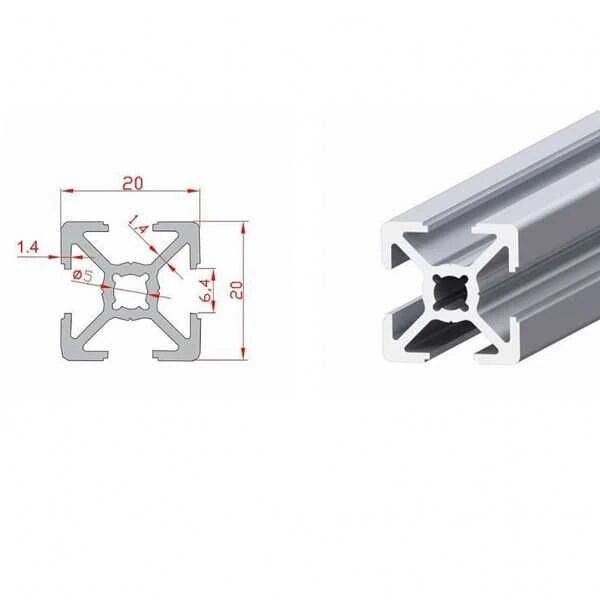 3D printer,cnc,pano, vitrin vb. konstrüksiyonların optimizasyonlarında yaygın olarak kullanılan sigma profildir. Bu profil 20x20mm boyutlarında ve kanal 6 'dır.