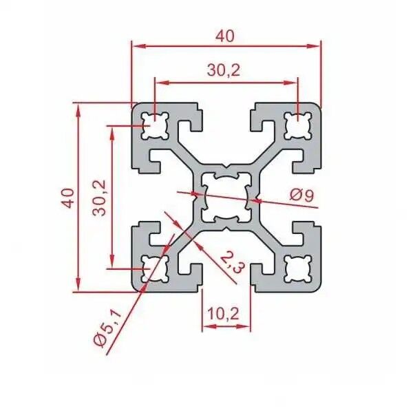 Kesit yapısı itibarı ile emsal ebatlı profillere göre daha fazla mukavemeti karşılayabilecek şekilde tasarlanmıştır. Orta yüklü şaselerin, taşıyıcı ayakların destek gerektiren yerlerinde tercih edilir. 3D printer,cnc,pano, vitrin vb. konstrüksiyonların optimizasyonlarında kullanılabilir. Bu profil 40x40 mm boyutlarında ve kanal 10 'dur.