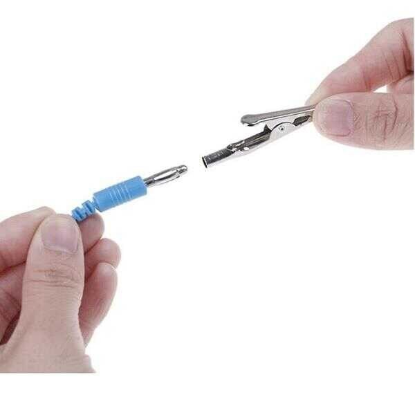 - Kablonun bir ucu 10 mm çıtçıt kopça, bir ucu banana-krokodildir.