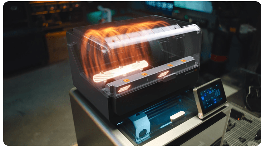PLA, ABS, PETG gibi farklı filamentler için özel kurutma modları bulunur.