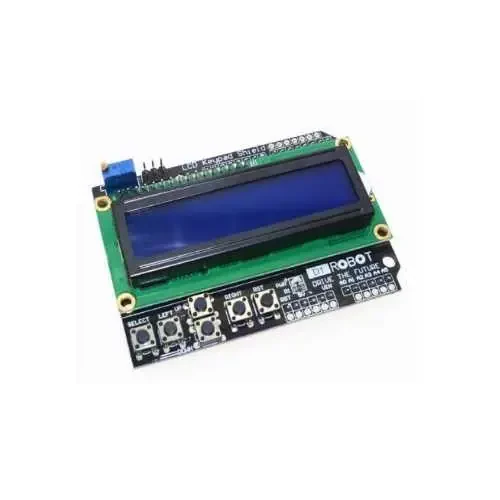 Bu modül sayesinde hem 16 x 2 lcd ekranı hem de kontrol tuşlarını tek kart üzerinde kullanabileceksiniz. Shield olarak arduino kartınızın üzerine direk oturtularak kullanılır. Ekran mavi arka plan , beyaz karakter rengine sahiptir.5 adet programlanabilir buton ve 1 adet reset butonu bulunmaktadır.5 butonun tamamı özel bir yapıyla Arduino A0 pinine bağlıdır. Bu sayede sadece bir pin üzeriden 5 tane butonun hepsi okunabilir.