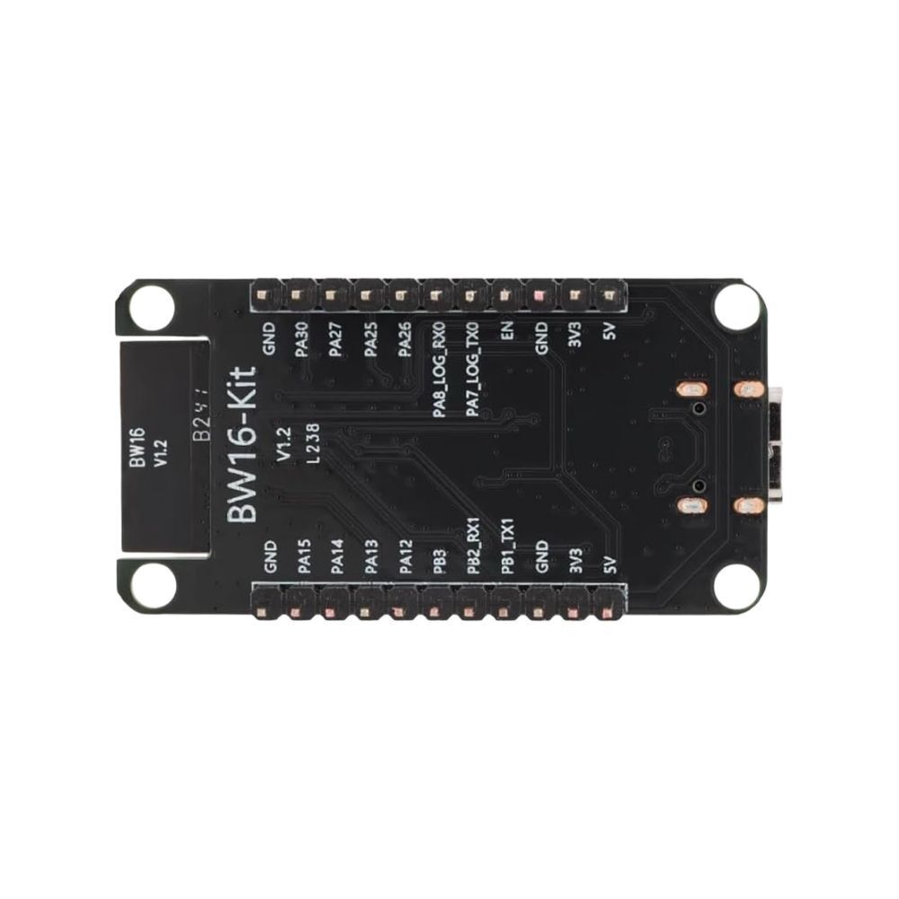 BW16, Realtek RTL8720DN çipi üzerine kurulu, Wi-Fi 2.4GHz ve Bluetooth 5.0 (BLE + BR/EDR) bağlantı desteği sunan güçlü ve düşük güç tüketimli bir geliştirme kartıdır. ARM Cortex-M33 ve Cortex-M23 çift çekirdekli yapısı sayesinde hem yüksek performanslı hem de düşük güç modlarında çalışabilir. Arduino IDE ve Realtek SDK ile uyumlu olması sayesinde prototipleme, eğitim ve IoT projeleri için son derece uygundur. Bu kart, USB Type-C bağlantısı ile kolayca programlanabilir ve breadboard dostu tasarımı sayesinde devre kurulumlarını hızlandırır. Akıllı ev uygulamalarından kablosuz sensör ağlarına kadar birçok alanda kullanılabilir.