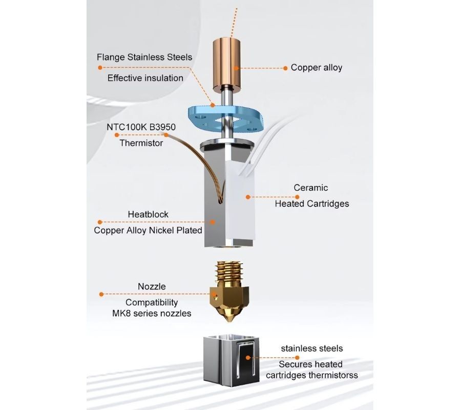 - Geniş Nozzle Uyumu — Standart MK8 serisi nozüllerle uyumludur.
