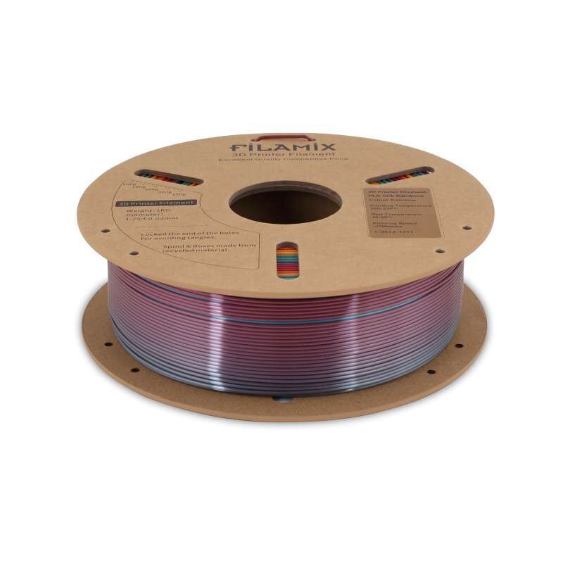 Rainbow renk geçişleri tasarımlara canlı, dinamik ve eğlenceli bir karakter kazandırır. Filamix Silk PLA Rainbow, baskı boyunca stabil renk değişimleri sağlayarak dekoratif ve sanatsal projelerde etkileyici görseller elde edilmesini sağlar. İpeksi parlak yüzeyi sayesinde modeller daha canlı ve premium bir görünüm kazanır.