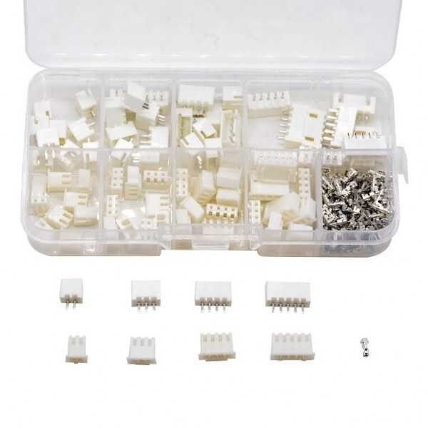 JST XH ve JST XHP 2/3/4/5 pinli 2.54mm tunik konnektör setidir. Elektronik tasarımlarda yaygın olarak kullanılan tuink konnektör tipidir. 4 çeşit xh(erkek), 4 çeşit xhp(dişi) konnektör ve 2.54mm tunik konnektör terminalinden oluşmaktadır. Toplamda 230 parçadan oluşmaktadır. Elektronik atölyelerinde bulundurulması gereken setlerdendir.