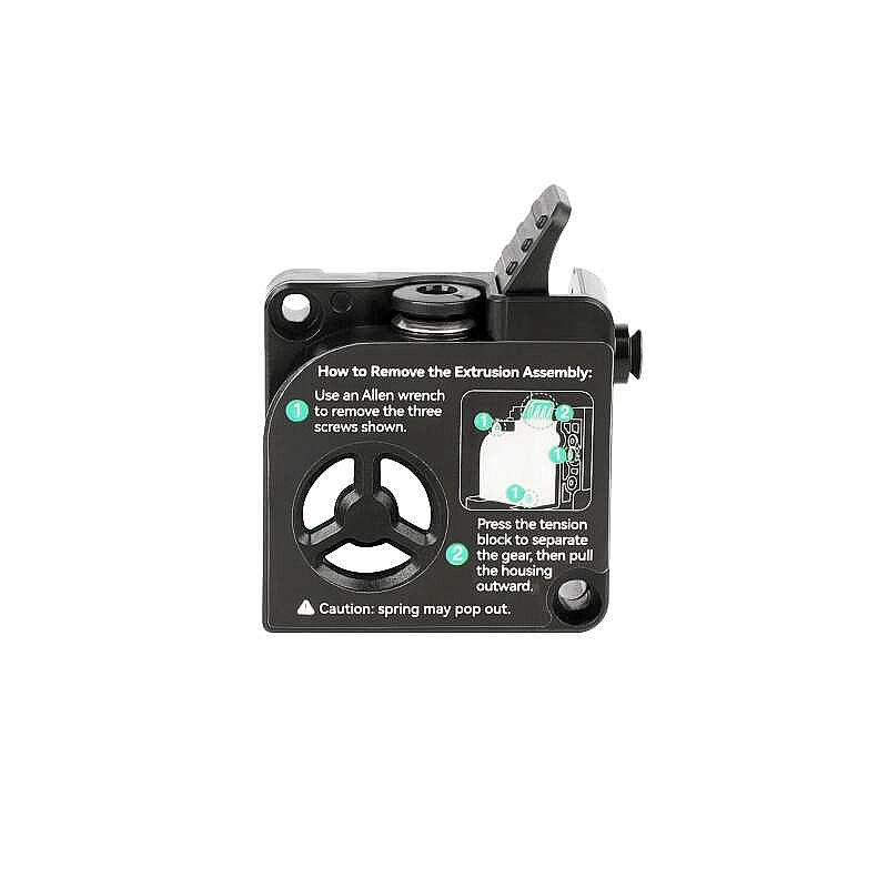 Extruder mekanizmasının ön tarafını kapatan bu parça, filamentin düzgün ve stabil şekilde beslenmesine yardımcı olur.