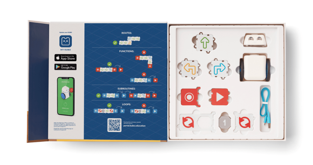 KUBO Coding Başlangıç Seti, beş yaş ve üzeri öğrencilere kodlama ve bilgi işlemsel düşünme becerilerini tanıtmak için ideal bir başlangıç noktasıdır. Basit ve mantıklı adımlarla işlevleri, alt programları ve döngüleri öğretir. KUBO, kapsamlı ders planları ve öğretmen kılavuzlarıyla birlikte gelir.