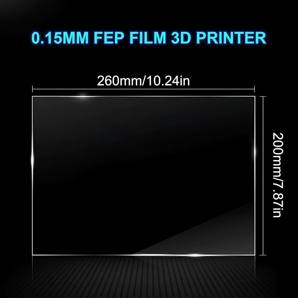 Bu ürün, 260x200mm boyutlarında, SLA 3D yazıcılar için kullanılan bir FEP filmidir. SLA yazıcılarla yüksek uyumluluk gösteren bu film, daha küçük ölçekli SLA modelleriyle de sorunsuz çalışabilir. Bu film, SLA yazıcıların reçineyle baskı yapma sürecinde kullanılan kritik bir malzemedir ve dayanıklılığı sayesinde uzun süre performans sağlayabilir.