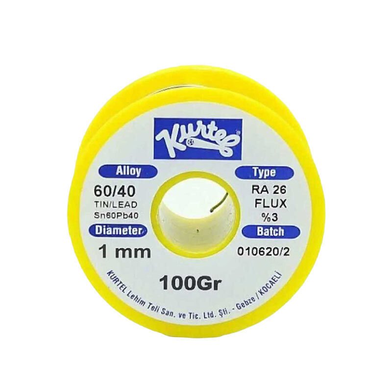 Kurtel 60/40 lehim teli, elektronik montaj ve tamir işlemleri için yüksek kaliteli ve güvenilir bir çözümdür. %60 kalay (Sn) ve %40 kurşun (Pb) alaşım oranı sayesinde düşük erime sıcaklığı, akıcı yayılım ve güçlü lehim bağlantıları sağlar.