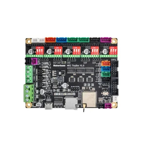 MKS TinyBee Makerbase firmasının üretmiş olduğu üzerinde ESP32 modülünü barındıran genellikle 3 boyutlu yazıcıların kontrolü için üretilmiş bir karttır.