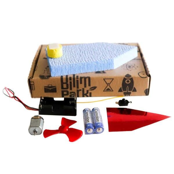- Çocukların, pil, pil yuvası, anahtar, DC motor, pervane, bağlantı kabloları gibi temel devre parçalarıyla tanışmalarını sağlar.