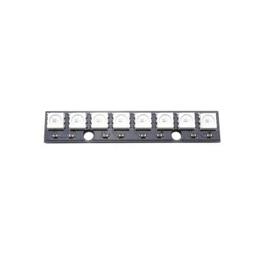 Bu modül ile RGB renklerini kullanarak görsel projeler yapabilirsiniz. Sıralı halde 8 tane RGB led bulunmaktadır. Ledler ayrı ayrı kontrol edilebilir ve farklı renklerde yakılabilir.
