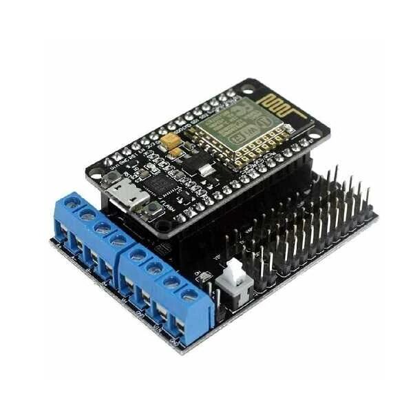 ESP8266 NodeMCU Geliştirme Kartı ile birlikte kullanabileceğiniz bu motor shield, üzerindeki L293D motor sürücü sayesinde 1 adet step motor veya 2 adet DC motor sürmenize olanak sağlar. Bu shield ile geliştirme kartını beraber kullanarak, oldukça kolay bir şekilde WiFi kontrollü robotlar yapabilirsiniz.