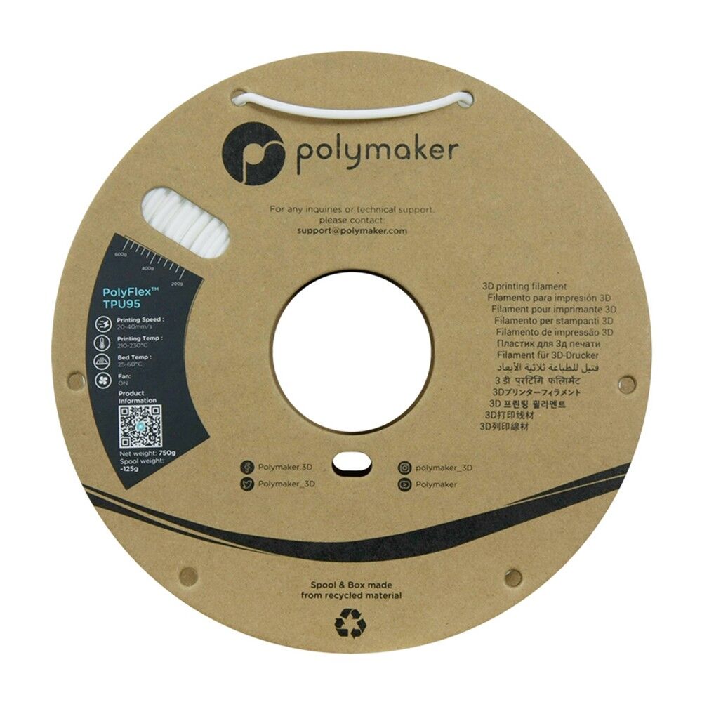 Polymaker PolyFlex™ TPU95, çoğu 3D yazıcıyla uyumlu olacak şekilde özel olarak tasarlanmış bir termoplastik poliüretan (TPU)