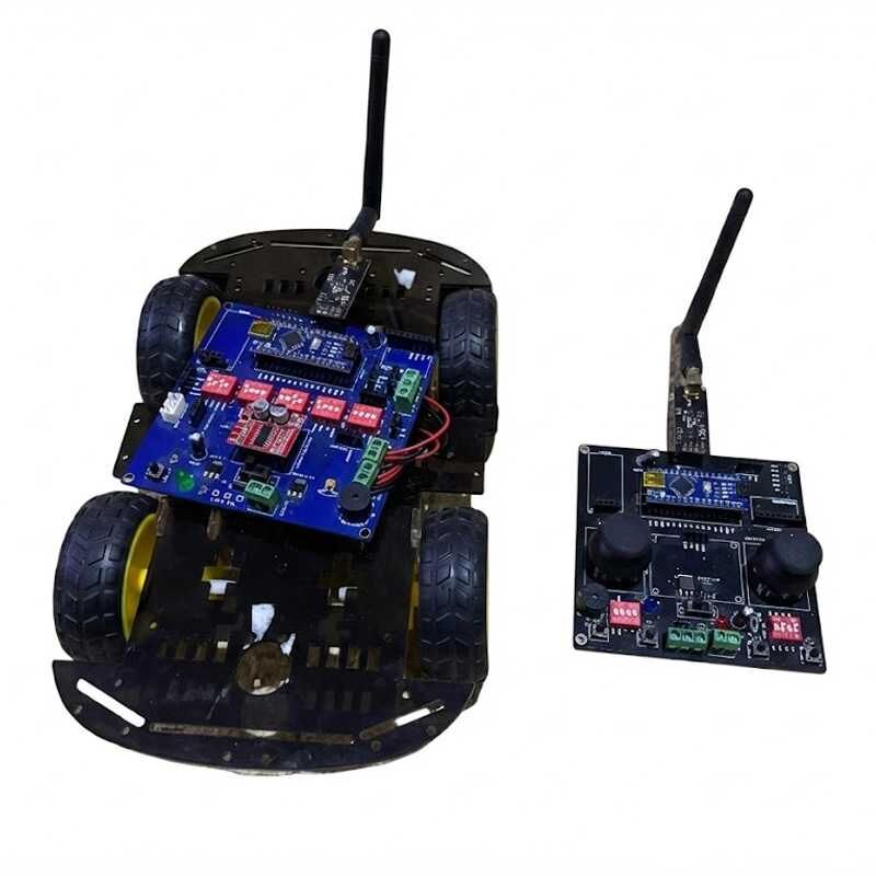 NRF24L01 Wifi Kontrol: 2.4Ghz iki nRF24 transceiver modülü antenleriyle birlikte biri araç üzerinde diğeri akıllı kumanda modülü üzerinde olmak üzere takılmalıdır ve gerekli tanımlama işlemleri yapılmalıdır. Daha sonra akıllı kumanda üzerindeki joystickler ile araç kontrolü sağlanabilir.