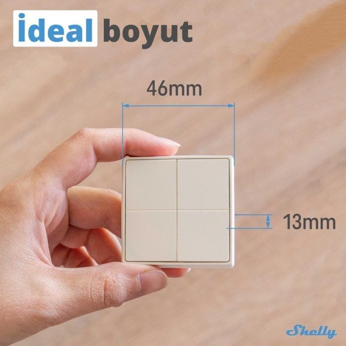 Shelly BLU Wall Switch 4, klasik duvar anahtarlarına akıllı özellikler kazandıran, Bluetooth Low Energy (BLE) teknolojisine sahip bir kontrol ünitesidir. Her biri 4 farklı eylem seçeneğine sahip toplam 4 fiziksel tuş ile birlikte, toplamda 16 farklı komut tanımlamanıza olanak tanır. Elektrik bağlantısı gerektirmeden çalıştığı için hem kurulum kolaylığı hem de esnek kullanım sunar.